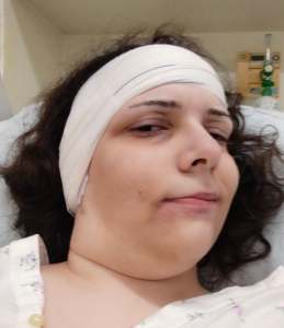 Levei duas horas para conseguir vencer a fraqueza e recuperar a coordenação motora do braço dominante, a fim de ter êxito em manusear meu celular. Porém, minha voz voltou bem antes, apesar de eu ter disfonia (distonia que atinge as cordas vocais). Meu companheiro relata que comecei a conversar normalmente assim que me estabeleci na cama do quarto. Como eu já sabia que ficaria com a cabeça enfaixada por, pelo menos 24h, pedi para ele me ajudar a tirar uma selfie, e foi por meio das várias fotos tiradas que notei que meus espasmos faciais também voltaram com rapidez.